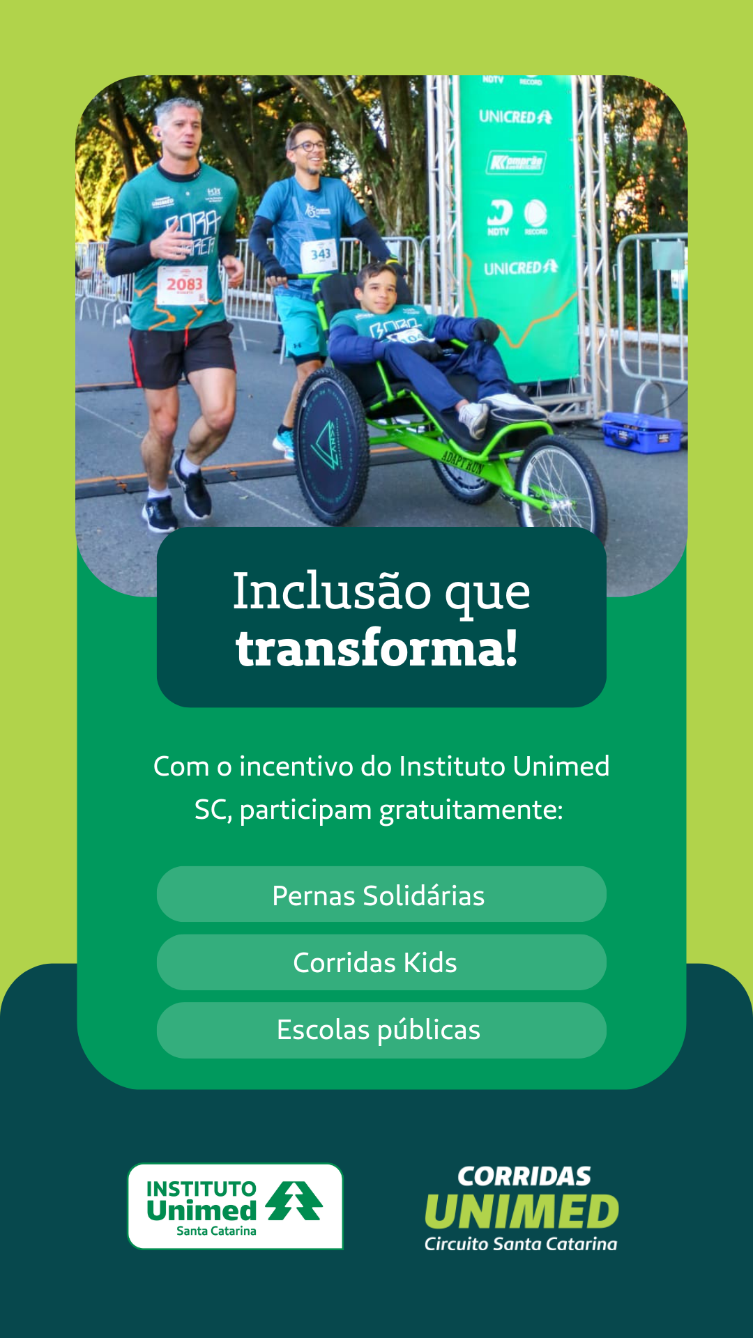 O Corridas Unimed – Circuito Santa Catarina 2025 já começou e, neste ano, traz novidades que reforçam o compromisso da Unimed com a inclusão, a saúde e o bem-estar. Pela primeira vez, o evento conta com o apoio da Lei de Incentivo ao Esporte, por meio do Instituto Unimed SC, ampliando a participação de atletas e levando a corrida também para estudantes de escolas públicas, que recebem ingressos de cortesia em cada etapa.