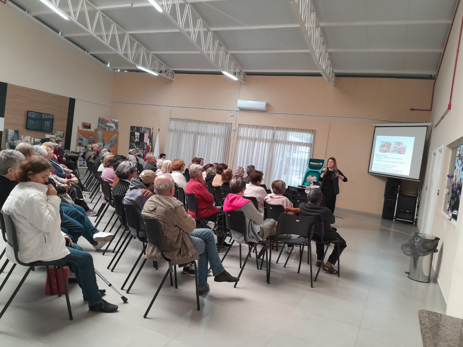 A Palestra com o tema Redução dos danos, manutenção de hábitos saudáveis e trocas favoráveis, abordou temas fundamentais para a qualidade de vida na terceira idade, como estratégias de redução de danos, a importância da manutenção de hábitos saudáveis no dia a dia e a adoção de escolhas mais favoráveis à saúde física e emocional.